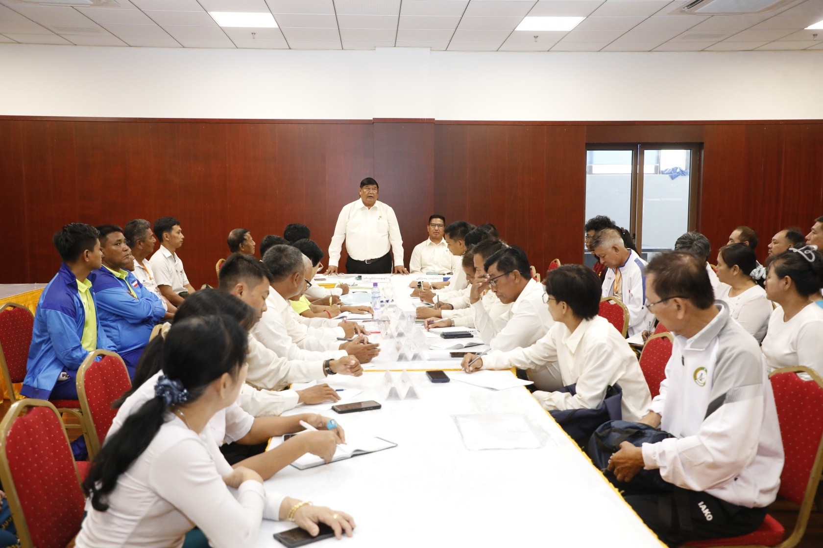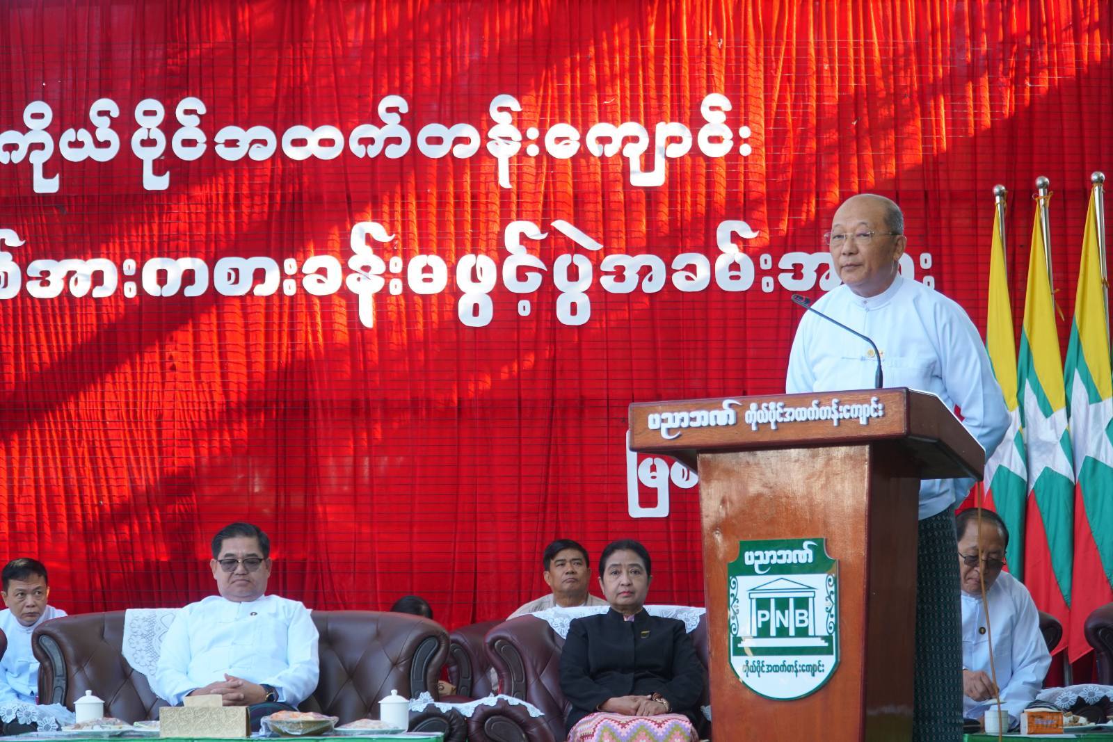 ပြည်ထောင်စုသမ္မတမြန်မာနိုင်ငံတော် ယာယီသမ္မတ နိုင်ငံတော်လုံခြုံရေးနှင့် အေးချမ်းသာယာရေးကော်မရှင်ဥက္ကဋ္ဌ ဗိုလ်ချုပ်မှူးကြီး မင်းအောင်လှိုင် (၃၃)ကြိမ်မြောက် အရှေ့တောင်အာရှ အားကစားပြိုင်ပွဲသို့ ဝင်ရောက်ယှဉ်ပြိုင်မည့် မြန်မာအားကစားအဖွဲ့အား အောင်နိုင်ရေးအလံအပ်နှင်းပွဲ အခမ်းအနားသို့ တက်ရောက်အမှာစကားပြောကြား