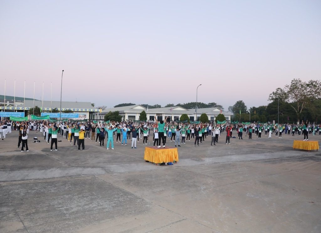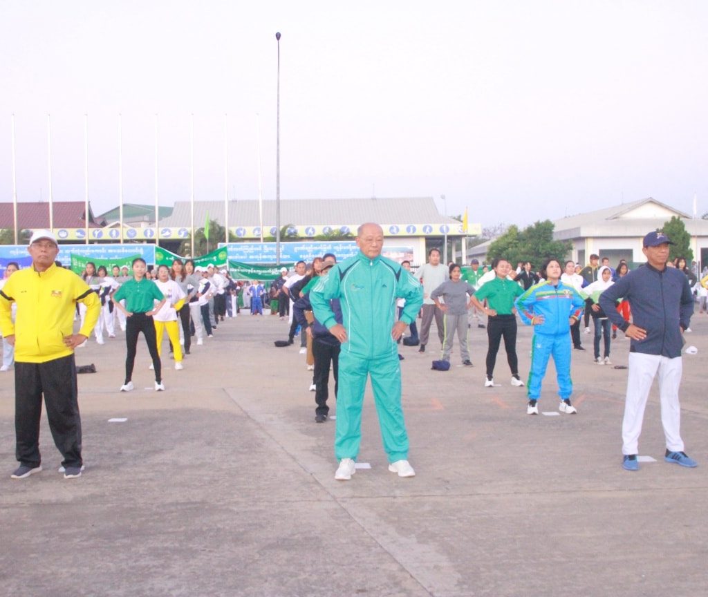ထို့နောက် ကိုယ်လက်ကြံ့ခိုင်ရေးလေ့ကျင့်ခန်း အတွဲ(၁)၊ (၂)နှင့် Physical Fitness Dance Exercises လေ့ကျင့်ခန်းများကို အားကစားနှင့်ကာယပညာဦးစီးဌာနမှ ဝန်ထမ်းများက သရုပ်ပြသပေး၍ စုပေါင်းလမ်းလျှောက်ပွဲတွင် ပါဝင်ကြသူများက တက်ကြွစွာပါဝင်ဆောင် ရွက်ခဲ့ကြပြီး စုပေါင်းလမ်းလျှောက်သူများကို အားကစားနှင့်ကာယပညာဦးစီးဌာနမှ တာဝန်ရှိ သူများက ရေသန့်ဘူးနှင့် အာဟာရမုန့်များပေးဝေကြသည်။
