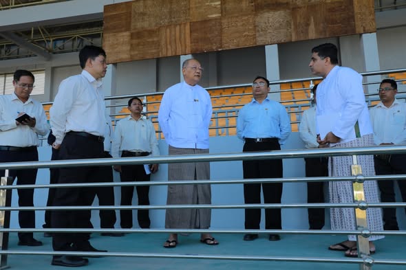 ဦးစွာ ပြည်ထောင်စုဝန်ကြီးနှင့်အဖွဲ့သည် မန္တလေးငလျင်ကြီးကြောင့် ထိခိုက်ပျက်စီးခဲ့သည့် ပြည်ထောင်စုနယ်မြေ နေပြည်တော်ကောင်စီ၏ ပင်မအားကစားကွင်းဖြစ်သည့် ရွှေကြာပင် အားကစားကွင်းအတွင်းရှိ ဘောလုံးကွင်းပျက်စီးခဲ့မှုများအား အမြန်ဆုံးအချိန်မီပြန်လည် ပြင်ဆင်နိုင်ရေး၊ ကြိုတင်မွေးထားသည့် ဂျပန်မြက်များအား အချပ်လိုက်ပြန်ကပ်ပြီး စိုက်ပျိုးနိုင်ရေးအတွက် ကွင်း မြေညှိခြင်း၊ ဘောလုံးကွင်းသဲခင်းခြင်းနှင့် ရေဖျန်းစနစ်(Field Sprinkler)များအတွက် ရေပိုက်များ အမြန်တပ်ဆင်ပြီးစီးရေး၊ ၂၀၂၅-၂၀၂၆ ဘဏ္ဍာရေးနှစ်၊ ပြည်ထောင်စုငွေလုံးငွေရင်း ရံပုံငွေဖြင့် တည်ဆောက်လျက်ရှိသည့် မီတာ ၄၀၀ Synthetic ပြေးလမ်းအသစ်ပြန်လည် ခင်းကျင်းနိုင်ရေးအတွက် ပျက်စီးသွားသည့် ယခင်ပြေးလမ်းအဟောင်း ကွန်ကရစ်ခင်းခြင်း ပြီးစီးမှု အခြေအနေအားလည်းကောင်း၊ ပေ(၄၈၀x၆၀) အနောက်ဘက် အထူးတန်းပွဲကြည့်စင်နှင့် ပေ(၁၈၀x၁၅၀) မိုးလုံလေလုံ အားကစားရုံ ရှေ့မျက်နှာစာ Composite အပြားများ အမြန်တပ်ဆင်ပြီးစီးရေး၊ ပွဲကြည့်စင်များ၊ နံရံများအား ပြုပြင်ဆောင်ရွက်ပြီးစီးမှုအခြေအနေ၊ ရေလိုင်း၊ မီးလိုင်းစနစ်များ ကောင်းမွန်စေရေးနှင့် LED ဘုတ်ပြား များအား ပြန်လည်ပြုပြင်ပြီးစီးမှု အခြေအနေများအားလည်းကောင်း လိုက်လံကြည့်ရှုစစ်ဆေးခဲ့ပြီး ရှင်းလင်းဆောင်တွင် သက်ဆိုင်ရာကုမ္ပဏီမှ တာဝန်ရှိသူက လုပ်ငန်းဆောင်ရွက်နေမှုများနှင့် ပတ်သက်ပြီး အသေးစိတ် ရှင်းလင်းတင်ပြခဲ့ရာ ပြည်ထောင်စုဝန်ကြီးက Synthetic ပြေးလမ်းအား သတ်မှတ်စံချိန် စံညွှန်းနှင့်အညီ အရည်အသွေး ပြည့်မီစေရေးနှင့် သတ်မှတ်ကာလအတွင်း အချိန်မီ ပြီးစီးစေရေးတို့အတွက် တာဝန်ယူဆောင်ရွက်လျက်ရှိသည့် သက်ဆိုင်ရာကုမ္ပဏီမှ တာဝန်ရှိသူများကို မှာကြားခဲ့ပြီးနောက် အားကစားကွင်း စိမ်းလန်းစိုပြေစေရေးအတွက် ခြုံနွယ်များရှင်းလင်းခြင်းနှင့် ပုံမှန်မြက်ဖြတ်ခြင်း လုပ်ငန်းများ ဆောင်ရွက်သွားရန် တာဝန်ရှိသူများကို လိုအပ်သည်များ မှာကြားခဲ့ကြောင်း သိရသည်။