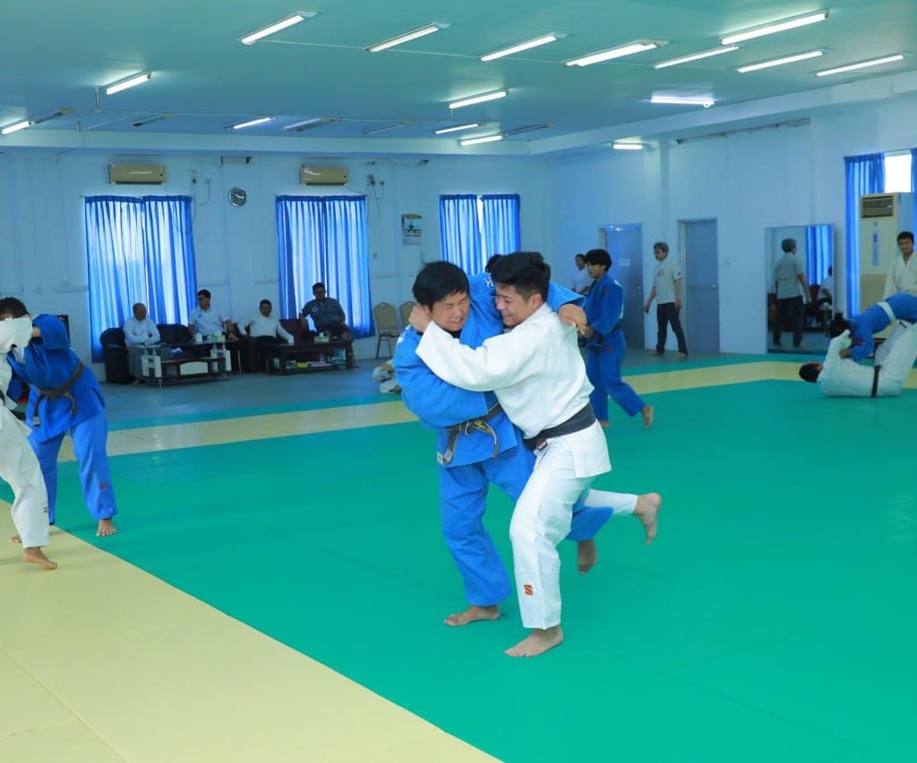 ဦးစွာ ပြည်ထောင်စုဝန်ကြီးသည် အားကစားလေ့ကျင့်ရေးစခန်း (Gold Camp)ရှိ ဂျူဒို လေ့ကျင့်ရေးခန်းမတွင် နည်းပြများက ပဏာမလက်ရွေးစင် အားကစားသမား များနှင့် လူငယ်အားကစားသမားများကို နည်းစနစ်ပိုင်းဆိုင်ရာများအား (Sparring) ကစားခြင်းဖြင့် တစ်ဦးချင်း သင်ကြားလေ့ကျင့်ပေးနေမှုများကို ကြည့်ရှုအားပေးခဲ့ပြီးနောက် (၃၃)ကြိမ်မြောက် အရှေ့တောင်အာရှ အားကစားပြိုင်ပွဲသို့ ဝင်ရောက်ယှဉ်ပြိုင်မည့် အားကစားသမားများအတွက် ပြိုင်ပွဲဝင် ဝတ်စုံ ဂျူဒိုကီနှင့်ခါးစည်းခါးပတ် ဝယ်ယူထားရှိမှု အခြေအနေများအား ကြည့်ရှုစစ်ဆေးခဲ့ပြီး ပြိုင်ပွဲဝင်ဝတ်စုံနှင့် အသားကျနေစေရန်အတွက် တာဝန်ရှိသူများကို လိုအပ်သည်များ ကြိုတင်ပြင်ဆင် ဆောင်ရွက်သွားရန် မှာကြားခဲ့သည်။