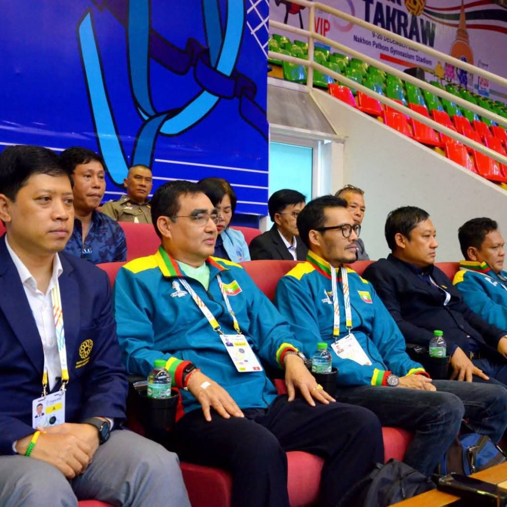 အလားတူ ပို့ဆောင်ရေးနှင့်ဆက်သွယ်ရေးဝန်ကြီးဌာန ဒုတိယဝန်ကြီး ဦးအောင်ကျော်ထွန်းသည် မြန်မာအားကစားအဖွဲ့ခေါင်းဆောင်၊ အားကစားနှင့်ကာယပညာဦးစီးဌာန ညွှန်ကြားရေးမှူးချုပ် ဦးဉာဏ်ဇော်ဦးနှင့် အုပ်ချုပ်မှုအဖွဲ့ဝင်များလိုက်ပါလျက် ထိုင်းနိုင်ငံ ဗန်ကောက်မြို့ရှိ ထိုင်းနိုင်ငံ ဗန်ကောက်မြို့ရှိ Nakhonpathom Sports Center Bangkok ၌ အမျိုးသားလေးယောက်တွဲပြိုင်ပွဲတွင် မြန်မာအသင်းမှ ဇင်မင်းဦး၊ အောင်မျိုးကျော်၊ သန့်ဇင်ထွန်း၊ ဇော်မင်းခန့်၊ ရှိန်းတဏ္ဏဇော်နှင့် ရန်ပိုင်ဦး တို့အတွဲနှင့် လာအိုအသင်းမှ အားကစားသမားများ၏ ယှဉ်ပြိုင်နေမှုအားလည်းကောင်း၊ အမျိုးသမီး လေးယောက်တွဲ အသင်းလိုက်ပြိုင်ပွဲတွင် မြန်မာအသင်းမှ အားကစားသမား ဖြူဖြူသန်း၊ ဖူးဖူး၊ နေခြည်နွေး၊ ယမုံဇင်၊ ခင်နှင်းဝေ၊ ချယ်ရီလင်းသစ်တို့အတွဲနှင့် ဗီယက်နမ်အသင်းမှ အားကစားသမား တို့၏ ယှဉ်ပြိုင်နေမှုများအားလည်းကောင်း၊ အမျိုးသားလေးယောက်တွဲ ဗိုလ်လုပွဲပြိုင်ပွဲတွင် မြန်မာ အသင်းမှ ဇင်မင်းဦး၊ အောင်မျိုးကျော်၊ သန့်ဇင်ထွန်း၊ ဇော်မင်းခန့်၊ ရှိန်းတဏ္ဏဇော်နှင့် ရန်ပိုင်ဦးတို့အတွဲ နှင့် ဗီယက်နမ်အသင်းမှ အားကစားသမားများ၏ ယှဉ်ပြိုင်နေမှုအားလည်းကောင်း၊ သွားရောက် ကြည့်ရှုအားပေးခဲ့သည်။