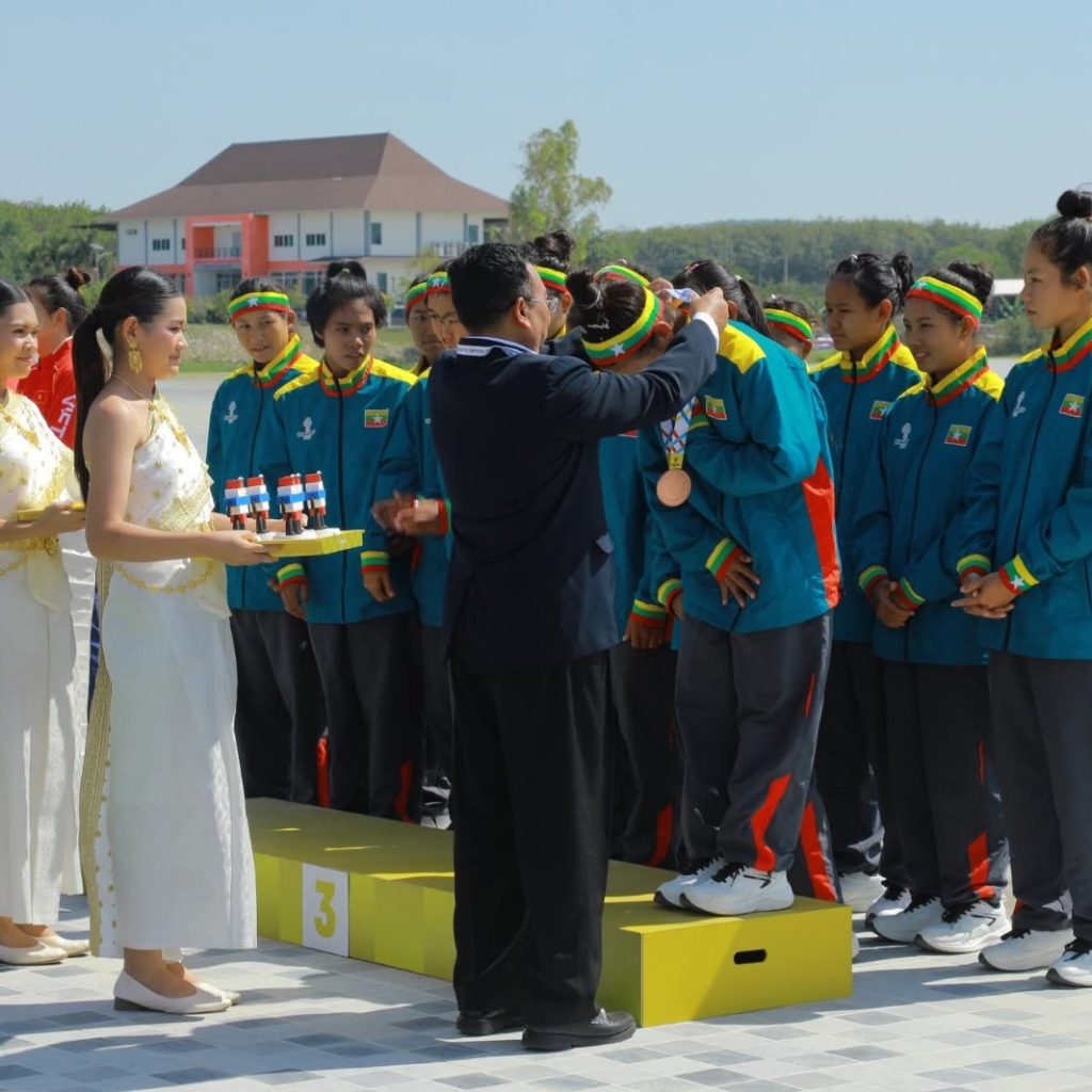 အဆိုပါပြိုင်ပွဲများတွင် ကြေးတံဆိပ်ဆု ၃ ခု ဆွတ်ခူးရရှိခဲ့သည့် နဂါးလှေလှော် အားကစားနည်း အမျိုးသား/အမျိုးသမီးအသင်းမှ အားကစားသမားများနှင့် ယမန်နေ့ ပြိုင်ပွဲပွဲစဉ်ဖြစ်သည့် မြင်းစီးအားကစားနည်း Eventing Dreassage, Show Jumping & Cross Country အားကစားနည်းသုံးမျိုးပါသည့်ပြိုင်ပွဲတွင် ကြေးတံဆိပ်ဆု ၁ ခုရရှိခဲ့သည့် မြန်မာအသင်းမှ သန်းနိုင်အောင်၊ စောမောင်နှင့် နန်းကိုဝင်းတို့အတွဲကို မြန်မာနိုင်ငံအိုလံပစ်ကော်မတီ အထွေထွေ အတွင်းရေးမှူး၊ အားကစားနှင့်လူငယ်ရေးရာဝန်ကြီးဌာန ဒုတိယဝန်ကြီး ဦးထိန်လင်းက ဂုဏ်ပြုချီးမြှင့်ငွေများ ပေးအပ်ချီးမြှင့်ခဲ့သည်။
