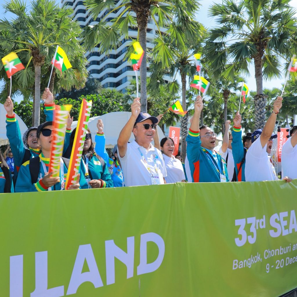 (၃၃)ကြိမ်မြောက် အရှေ့တောင်အာရှအားကစားပြိုင်ပွဲကို ထိုင်းနိုင်ငံ၊ ဗန်ကောက်နှင့် ချွန်ဘူရီမြို့ များရှိ သက်ဆိုင်ရာ အားကစားကွင်း/အားကစားရုံများတွင် ကျင်းပပြုလုပ်လျက်ရှိပြီး မြန်မာအသင်း အနေဖြင့် ပိုက်ကျော်ခြင်း၊ စကွက်ရ်၊ စက်ဘီး၊ သေနတ်ပစ်၊ စားပွဲတင်တင်းနစ်၊ ကဘာဒီ၊ ခရစ်ကတ်၊ လက်ဝှေ့၊ ဘိလိယက်နှင့်စနူကာ၊ ဖူဆယ်၊ E-sports၊ အပြည်ပြည်ဆိုင်ရာလှေ၊ မြင်းစီး၊ နပန်းနှင့် ရွက်လှေပြိုင်ပွဲများ၌ ဝင်ရောက်ယှဉ်ပြိုင်ခဲ့ရာ ယနေ့ နံနက်ပိုင်းတွင် မြန်မာနိုင်ငံအိုလံပစ်ကော်မတီ အထွေထွေအတွင်းရေးမှူး၊ အားကစားနှင့်လူငယ်ရေးရာဝန်ကြီးဌာန ဒုတိယဝန်ကြီး ဦးထိန်လင်း၊ ပို့ဆောင်ရေးနှင့်ဆက်သွယ်ရေးဝန်ကြီးဌာန ဒုတိယဝန်ကြီး ဦးအောင်ကျော်ထွန်း၊ ထိုင်းနိုင်ငံဆိုင်ရာ ပြည်ထောင်စုသမ္မတ မြန်မာနိုင်ငံသံအမတ်ကြီး ဦးဇော်ဇော်စိုးနှင့် ဇနီးဒေါ်ခင်မိုးမိုးခိုင်၊ စစ်သံမှူးကြီး ဗိုလ်မှူးချုပ်ဝင်းသူလင်းနှင့်ဇနီး ဒေါ်စန္ဒာခိုင်၊ မြန်မာအားကစားအဖွဲ့ခေါင်းဆောင်၊ အားကစားနှင့်ကာယပညာဦးစီးဌာန ညွှန်ကြားရေးမှူးချုပ် ဦးဉာဏ်ဇော်ဦးနှင့် အုပ်ချုပ်မှုအဖွဲ့ဝင်များ၊ မြန်မာ အားကစားအဖွဲ့ချုပ် ဥက္ကဋ္ဌများနှင့် တာဝန်ရှိသူများ လိုက်လံကြည့်ရှုအားပေးခဲ့သည်။