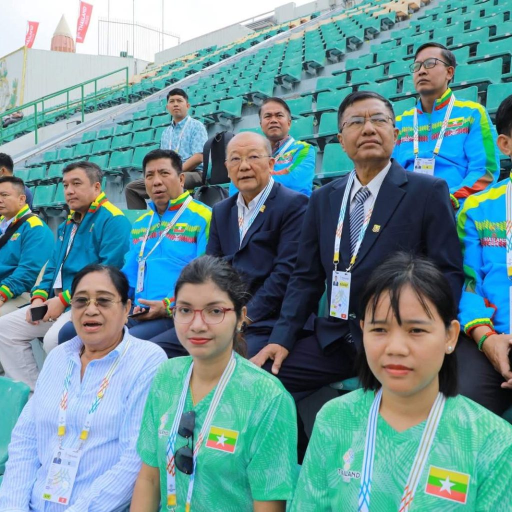 (၃၃)ကြိမ်မြောက် အရှေ့တောင်အာရှအားကစားပြိုင်ပွဲကို ထိုင်းနိုင်ငံ၊ ဗန်ကောက်၊ ချွန်ဘူရီနှင့် ချင်းမိုင်းမြို့များတွင် ကျင်းပပြုလုပ်လျက်ရှိရာ မြန်မာအသင်းအနေဖြင့် ပြေးခုန်ပစ်၊ ဘော်လီဘော၊ သေနတ်ပစ်၊ ဘိလိယက်နှင့်စနူကာ၊ ဂျူဒို၊ ရေကူး၊ ခရစ်ကတ်၊ ဂျူဂျစ်ဆု၊ ပိုက်ကျော်ခြင်း၊ ကရာတေး၊ ပီတန်း၊ ကြက်တောင်၊ စားပွဲတင်တင်းနစ်၊ တိုက်ကွမ်ဒို၊ ကျွမ်းဘား၊ ကဘာဒီ၊ စကိတ်၊ ဂေါက်သီးရိုက်၊ ကနူးကယက်၊ ရွက်လှေ၊ တက်ဂ်ဘော၊ ဟော်ကီပြိုင်ပွဲများတွင် ဝင်ရောက်ယှဉ်ပြိုင်ခဲ့ရာ ယနေ့ နံနက်ပိုင်းတွင် မြန်မာနိုင်ငံအိုလံပစ်ကော်မတီဥက္ကဋ္ဌ၊ အားကစားနှင့်လူငယ်ရေးရာဝန်ကြီးဌာနနှင့် ဟိုတယ်နှင့်ခရီးသွားလာရေးဝန်ကြီးဌာန ပြည်ထောင်စုဝန်ကြီး Jeng Phang နော်တောင်၊ ပြန်ကြားရေး ဝန်ကြီးဌာန ဒုတိယဝန်ကြီး ဦးရဲတင့်၊ ရန်ကုန်တိုင်းဒေသကြီးအစိုးရအဖွဲ့ လူမှုရေးရာဝန်ကြီး ဦးဌေး အောင်၊ မြန်မာအားကစားအဖွဲ့ခေါင်းဆောင်နှင့် အုပ်ချုပ်မှုအဖွဲ့ဝင်များ၊ မြန်မာအားကစားအဖွဲ့ချုပ် ဥက္ကဋ္ဌများနှင့် တာဝန်ရှိသူများ တက်ရောက်ကြည့်ရှုအားပေးခဲ့သည်။