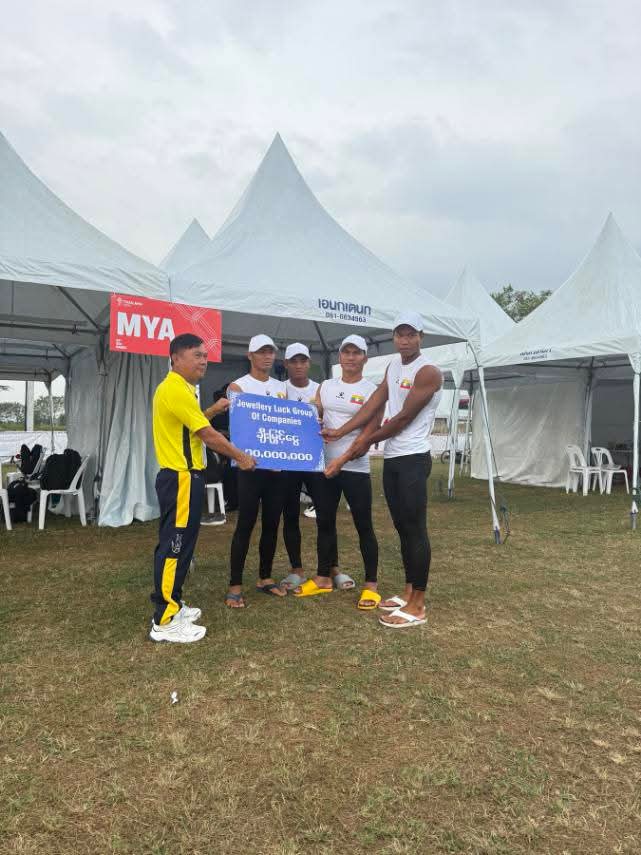 ကနူး မီတာ ၂၀၀ အမျိုးသား ၄ ယောက်လှော်ပြိုင်ပွဲတွင် မြန်မာအသင်းမှ မျိုးလှိုင်ဝင်း၊ သန့်ဇင်ဦး၊ ကျော်ဇေယျာ၊ ထွဋ်ခေါင်ဇော်၊ သက်ပိုင်ဖြိုးနှင့် အောင်ဖြိုးဟိန်းတို့အတွဲက ဒုတိယ ငွေတံဆိပ်ဆု ရရှိခဲ့သည့်အတွက် ပြန်ကြားရေးဝန်ကြီးဌာန ဒုတိယဝန်ကြီး ဦးရဲတင့်က ဂုဏ်ပြု ဆုတံဆိပ်နှင့် လှေလှော်အားကစားအဖွဲ့ချုပ် ဥက္ကဋ္ဌ ဦးသောင်းထိုက်မင်းတို့က ဂုဏ်ပြုချီးမြှင့်ငွေများ အသီးသီး ပေးအပ်ချီးမြှင့်ခဲ့သည်။