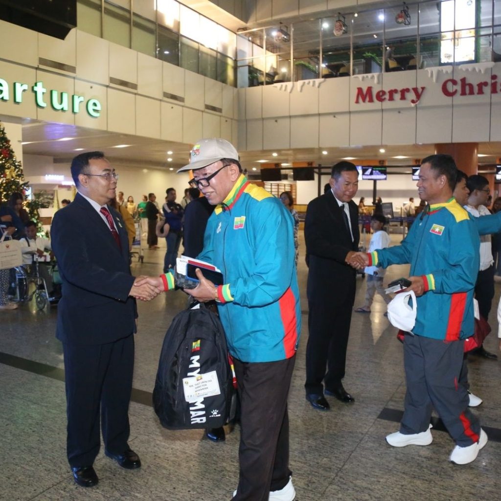 ၂၀၂၅ ခုနှစ် ဒီဇင်ဘာလ ၉ ရက်နေ့မှ ၂၀ ရက်နေ့အထိ ထိုင်းနိုင်ငံ ၊ ဘန်ကောက်မြို့တွင် ကျင်းပသည့် (၃၃)ကြိမ်မြောက်အရှေ့တောင်အာရှအားကစားပြိုင်ပွဲတွင် ဖိတ်ကြားခံပုဂ္ဂိုလ်အဖြစ် တက်ရောက်မည့် မြန်မာနိုင်ငံအမျိုးသားအိုလံပစ်ကောင်စီအတွင်းရေးမှူး ဒုတိယဝန်ကြီး ဦးထိန်လင်း နှင့် ကောင်စီအဖွဲ့ဝင် ဒုတိယဝန်ကြီး ဦးအောင်ကျော်ထွန်း တို့ ခေါင်းဆောင်သော အုပ်ချုပ်မှုအဖွဲ့နှင့် ပြိုင်ပွဲဝင်ရောက်ယှဉ်ပြိုင်မည့် နပန်းအားကစားအဖွဲ့သည် ယနေ့နံနက်ပိုင်းတွင် ထိုင်းနိုင်ငံ၊ ဘန်ကောက်မြို့ သို့ လေကြောင်းခရီးဖြင့် ရန်ကုန်အပြည်ပြည်ဆိုင်ရာ လေဆိပ်မှ ထွက်ခွာသွားရာ အားကစားနှင့်လူငယ်ရေးရာဝန်ကြီးဌာနမှ တာဝန်ရှိပုဂ္ဂိုလ်များက လိုက်လံပို့ဆောင်နှုတ်ဆက်ခဲ့ကြောင်းသိရသည်။