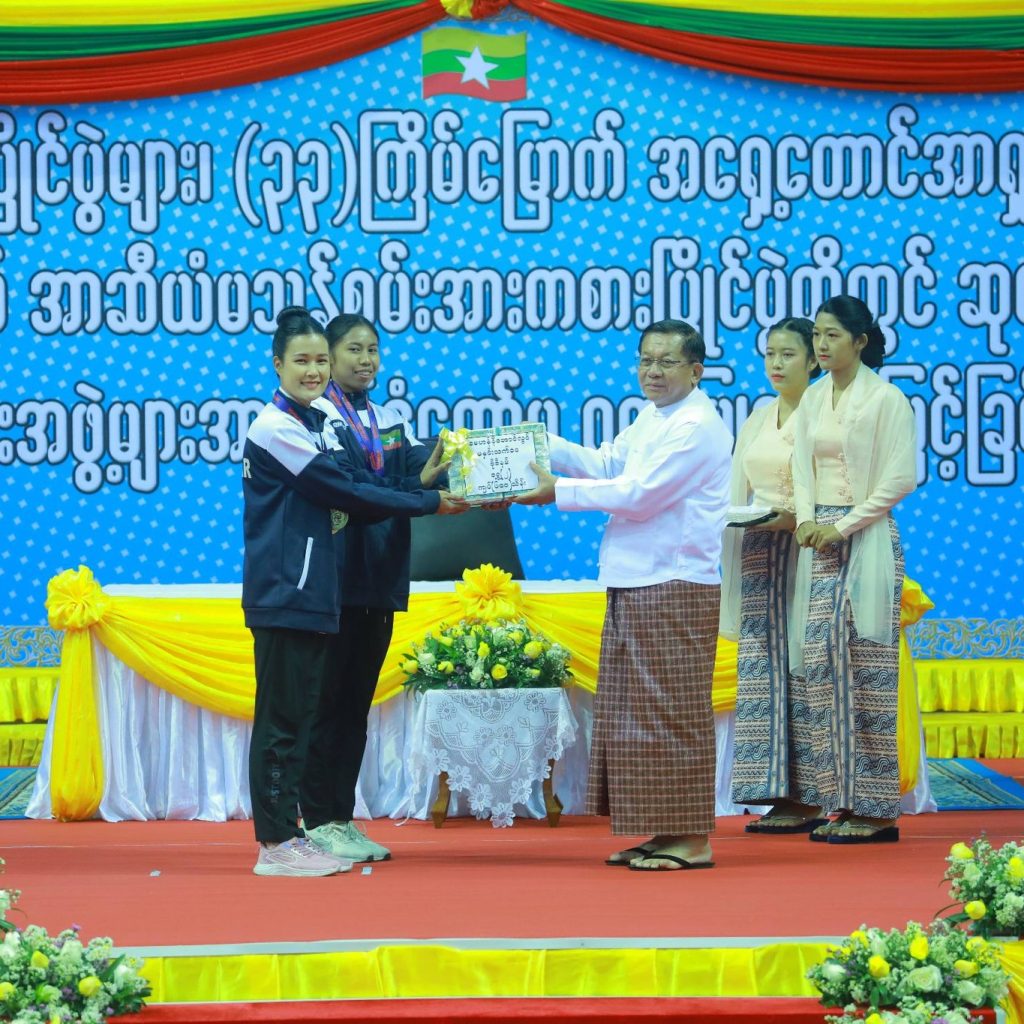 ၂၀၂၅ ခုနှစ်အတွင်း အင်ဒိုနီးရှားနိုင်ငံ၌ ကျင်းပခဲ့သည့် (၈) ကြိမ်မြောက် ကမ္ဘာ့ဗိုဗီနမ်ချန်ပီယံရှစ်ပြိုင်ပွဲ၊ (၁၆) ကြိမ်မြောက် ကမ္ဘာ့ကာယဗလနှင့် ကာယကြံ့ခိုင်မှုအားကစားပြိုင်ပွဲ၊ ထိုင်းနိုင်ငံ၌ ကျင်းပသည့် (၃၃) ကြိမ်မြောက် အရှေ့တောင်အာရှအားကစားပြိုင်ပွဲနှင့် ၂၀၂၆ ခုနှစ် ဇန်နဝါရီလအတွင်း ထိုင်းနိုင်ငံ၌ ကျင်းပပြုလုပ်ခဲ့သည့် (၁၃) ကြိမ်မြောက် အာဆီယံမသန်စွမ်းအားကစားပြိုင်ပွဲတို့တွင် နိုင်ငံ့ဂုဏ်ဆောင်ခဲ့သည့် အားကစားသမားမောင်မယ်များအား နိုင်ငံတော်မှ ဂုဏ်ပြုချီးမြှင့်ပွဲအခမ်းအနားကို ယနေ့နံနက်ပိုင်းတွင် နေပြည်တော်ရှိ ဝဏ္ဏသိဒ္ဓိအားကစားရုံ (A) ၌ ကျင်းပရာ ပြည်ထောင်စုသမ္မတ မြန်မာနိုင်ငံတော် ယာယီသမ္မတ နိုင်ငံတော်လုံခြုံရေးနှင့် အေးချမ်းသာယာရေးကော်မရှင်ဥက္ကဋ္ဌ ဗိုလ်ချုပ်မှူးကြီး မင်းအောင်လှိုင် တက်ရောက်အမှာစကားပြောကြားပြီး ဂုဏ်ပြုဆုငွေများ ပေးအပ်ချီးမြှင့်သည်။