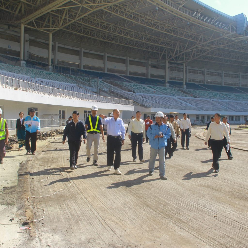 ပြည်ထောင်စုဝန်ကြီး Jeng Phang နော်တောင် မန္တလေးငလျင်ဒဏ်ကြောင့် ထိခိုက်ပျက်စီးခဲ့သည့် ဝဏ္ဏသိဒ္ဓိဘောလုံးကွင်းနှင့် ရေကူးကန် ပြန်လည်ပြုပြင် ဆောင်ရွက်နေမှုအခြေအနေများအား လိုက်လံကြည့်ရှုစစ်ဆေး