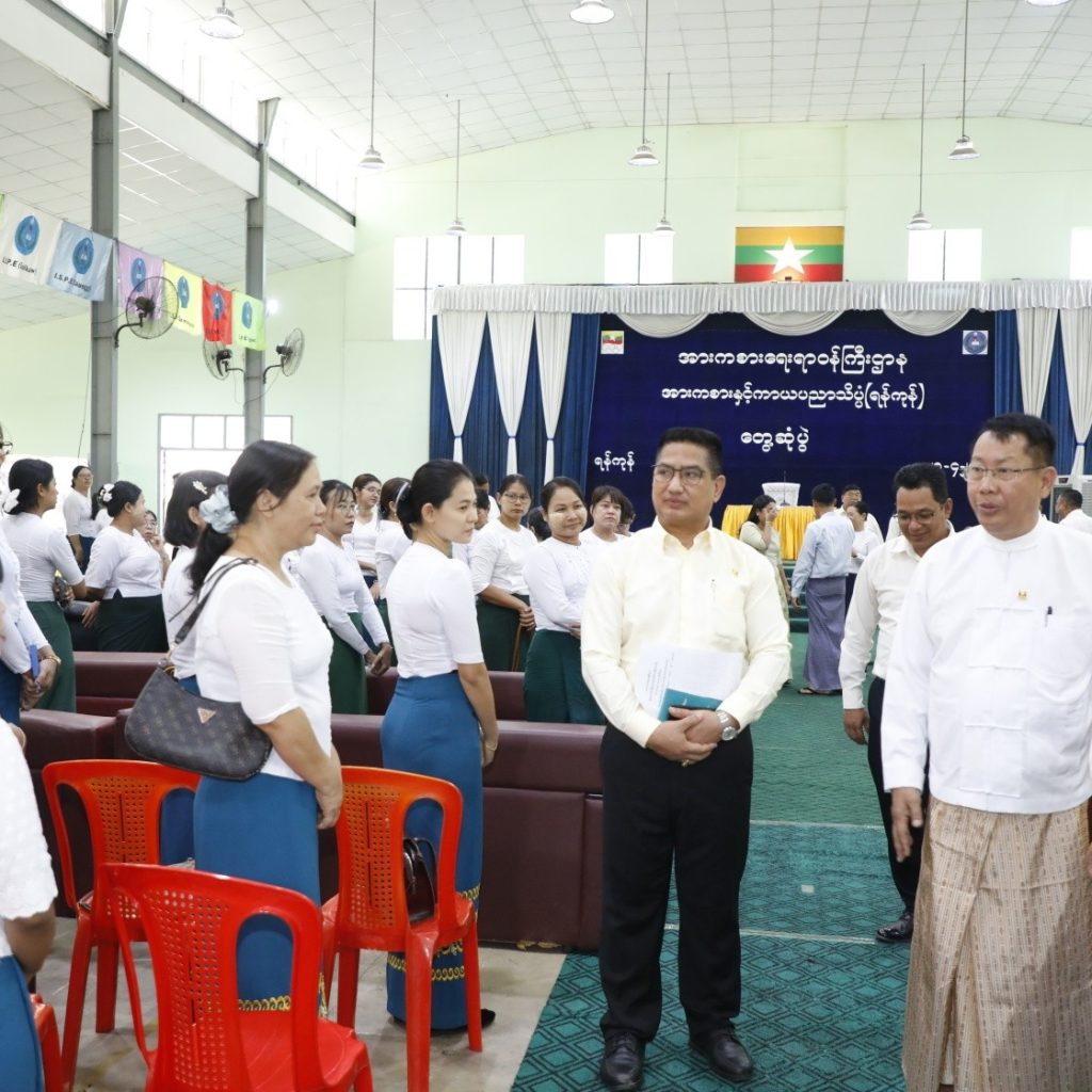ယင်းနောက် ပြည်ထောင်စုဝန်ကြီးနှင့်အဖွဲ့သည် ကျိုက္ကဆံအားကစားကွင်းရှိ အားကစားနှင့် ကာယပညာသိပ္ပံ(ရန်ကုန်) ပြည်ထောင်စုခန်းမသို့ သွားရောက်ခဲ့ပြီး အားကစားနှင့်ကာယပညာဦးစီးဌာန (ရန်ကုန်)ရှိ အရာထမ်း၊ အမှုထမ်းများနှင့်တွေ့ဆုံ၍ ပြည်ထောင်စုဝန်ကြီးက အမှာစကားပြောကြားရာတွင် မိမိတို့ဝန်ကြီးဌာနအနေဖြင့်မြန်မာ့အားကစားအဆင့်အတန်း တိုးတက်မြင့်မားလာစေရေးနှင့် တစ်မျိုးသားလုံး ကျန်းမာကြံ့ခိုင်စေရေးတို့အတွက် ပိုမိုကောင်းမွန်အောင် အခြေခံမှစတင်၍ အတူတကွ ညီညီညွတ်ညွတ် ပူးပေါင်းပါဝင်ကြိုးစားဆောင်ရွက်သွားကြစေလိုကြောင်း၊ အားကစား၏အနာဂတ် ပိုမို ကောင်းမွန်လှပလာစေရန် စိတ်တူကိုယ်တူဖြင့် မိမိတို့ကျရာ အခန်းကဏ္ဍမှ တာဝန်ကျေပွန်စွာဖြင့် တက်ညီလက်ညီ ဝိုင်းဝန်းဆောင်ရွက်သွားကြစေလိုကြောင်း၊ နိုင်ငံတော်အကြီးအကဲ၏ လမ်းညွှန်ချက်များ အတိုင်း ရက် ၁၀၀ အတွင်းဆောင်ရွက်ရမည့် လုပ်ငန်းစဉ်များကို ပြည်ထောင်စုဝန်ကြီး ညွှန်ကြားသည့် မဟာဗျူဟာများအတိုင်း နည်းဗျူဟာများ စနစ်တကျရေးဆွဲ၍ အကောင်အထည်ဖော် ဆောင်ရွက်သွားစေလိုကြောင်း၊ အားကစားနှင့်ကာယပညာသိပ္ပံ(ရန်ကုန်)ရှိ ကျောင်းသား/ကျောင်းသူများ အားကစားအဆင့်အတန်း တိုးတက်လာစေရေး၊ အားကစားစိတ်ဓာတ်ပြည့်ဝစေရေး၊ လေ့ကျင့်ရေးလုပ်ငန်းစဉ်များနှင့် စပ်လျဉ်းပြီး နည်းစနစ်ပိုင်း၊ စံချိန်စံညွှန်းပိုင်းများကို အထူးဂရုစိုက်၍ အခြေခံကစပြီး စနစ်တကျ ဆောင်ရွက်သွားကြစေလိုကြောင်း၊ နိုင်ငံတော်က အားထားရသည့် မျိုးဆက်သစ်လူငယ်များ ပေါ်ထွက်လာစေရန်နှင့် နိုင်ငံတကာပြိုင်ပွဲများတွင် ရွှေတံဆိပ်ဆုများ ရရှိအောင် အားလုံးဝိုင်းဝန်းပူးပေါင်းဆောင်ရွက် သွားကြရန်လိုကြောင်း၊ မြန်မာ့အားကစားလောက ပိုမိုကောင်းမွန်လာအောင် အတွေးအခေါ်၊ အယူအဆများ၊အကြံဉာဏ်ကောင်းများဖြင့် ဝိုင်းဝန်းပေါင်းစပ်ဆောင်ရွက်သွားကြစေလိုကြောင်း၊ လူတိုင်းတွင် မတူညီသည့် အလှကိုယ်စီ ရှိကြသည်နှင့်အမျှ အရည်အချင်းကိုယ်စီရှိကြသူများဖြစ်သည့်အတွက် အားလုံးပြိုင်တူတွန်းလျှင် ရွေ့နိုင်ပါကြောင်း၊ နိုင်ငံတော်ကအားထားရပြီး ထူးချွန်ထက်မြက်သည့် ခေါင်းဆောင်ကောင်းများဖြစ်အောင် ကြိုးစားကြစေလိုကြောင်းပြောကြားခဲ့ပြီးနောက် အရာထမ်း၊ အမှုထမ်းများအား ရင်းရင်းနှီးနှီး လိုက်လံနှုတ်ဆက်ခဲ့သည်။