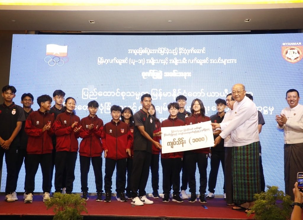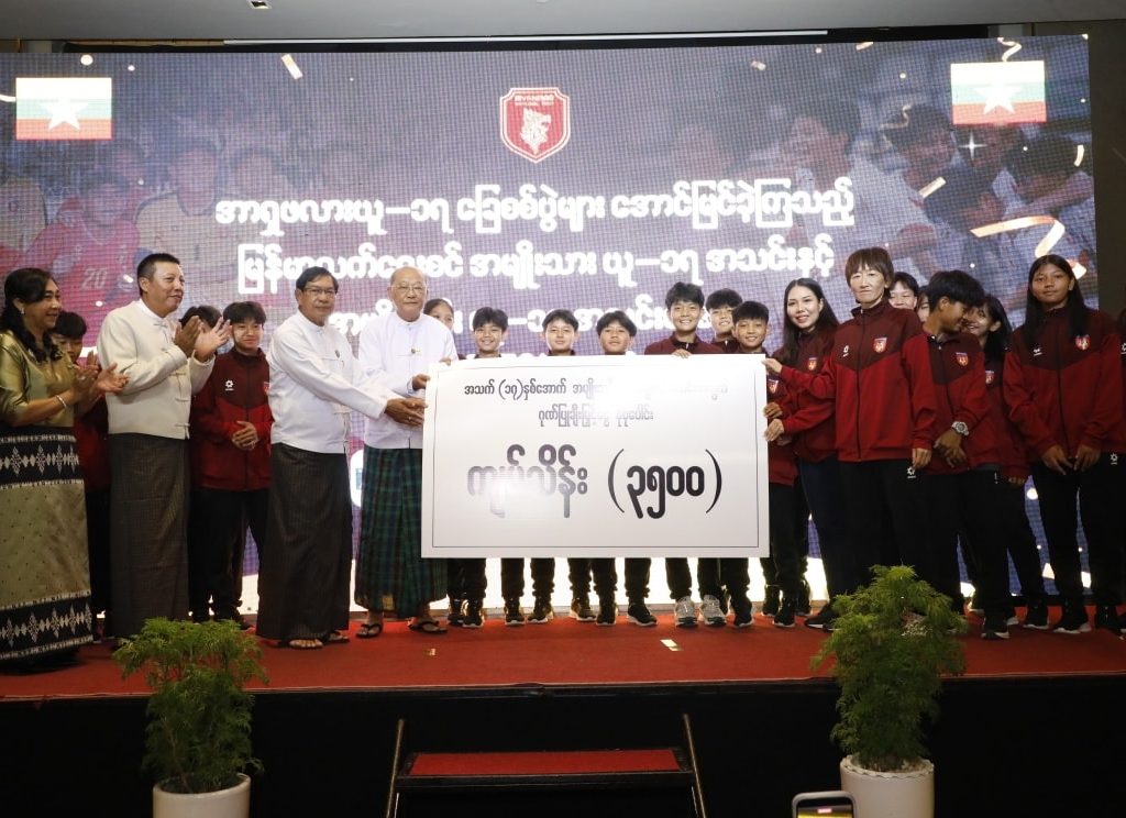 မြန်မာနိုင်ငံအိုလံပစ်ကော်မတီ ဥက္ကဋ္ဌ၊ ပြည်ထောင်စုဝန်ကြီး Jeng Phang နော်တောင် ၂၀၂၅ ခုနှစ် အာရှယူ-၁၇ ခြေစစ်ပွဲများတွင် အောင်မြင်မှုများရရှိခဲ့သည့် မြန်မာ့လက်ရွေးစင် အမျိုးသားယူ-၁၇ အသင်းနှင့် အမျိုးသမီးယူ-၁၇အသင်းများကို ဂုဏ်ပြုချီးမြှင့်ခြင်းအခမ်းအနားသို့ တက်ရောက်
