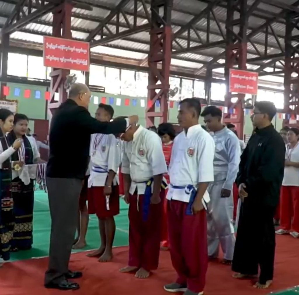 ထို့နောက် မြန်မာ့သိုင်းစွမ်းရည်ပြပြိုင်ပွဲသို့ ဆက်လက်တက်ရောက်အားပေးခဲ့ပြီး ပြည်ထောင်စုဝန်ကြီး Jeng Phang နော်တောင်က သရုပ်ပြအားကစားသမားများထံသို့ ဆုတံဆိပ်များ နှင့်ဂုဏ်ပြုချီးမြှင့်ငွေများကို ပေးအပ်ဂုဏ်ပြုခဲ့ပါသည်။ ပြည်ထောင်စုဝန်ကြီးက ဤကဲ့သို့ အားကစားပြိုင်ပွဲများ ကျင်းပခြင်းဖြင့် မြန်မာ့ရိုးရာကိုယ်လုံကိုယ်ခံပညာကို ဆက်လက်ထိန်းသိမ်း မြှင့်တင်နိုင်ရေးနှင့် မျိုးဆက်သစ် ရွက်ပုန်းသီးအားကစားသမားများ ပေါ်ထွက်လာစေရေးကို အထောက်အကူပြုသည့်အပြင် ဒေသခံလူငယ်များ၏ ကိုယ်ရည်ကိုယ်သွေး ဖွံ့ဖြိုးရေးအတွက်လည်း အထောက်အကူပြုပါကြောင်း၊ ထို့အပြင် ဒေသ၏ ခရီးသွားလာရေးဖွံ့ဖြိုးတိုးတက်မှုအတွက်လည်း အရေးပါသည့်အတွက် ပြိုင်ပွဲများ ဆက်လက်ကျင်းပနိုင်ရေးအတွက်လည်း ကြိုးစားဆောင်ရွက် သွားကြရန် မှာကြားခဲ့ပါကြောင်း သတင်းရရှိပါသည်။