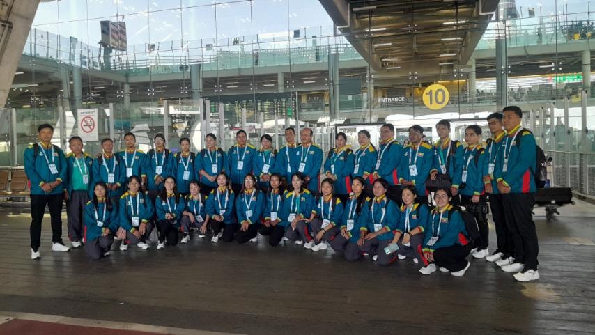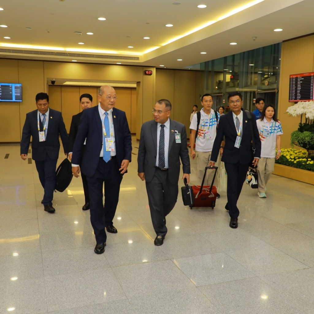(၃၃)ကြိမ်မြောက် အရှေ့တောင်အာရှ အားကစားပြိုင်ပွဲသို့ ဝင်ရောက်ယှဉ်ပြိုင်ရန်အတွက် မြန်မာနိုင်ငံအိုလံပစ်ကော်မတီ ဥက္ကဋ္ဌ၊ အားကစားနှင့်လူငယ်ရေးရာဝန်ကြီးဌာနနှင့် ဟိုတယ်နှင့် ခရီးသွားလာရေးဝန်ကြီးဌာန ပြည်ထောင်စုဝန်ကြီး Jeng Phang နော်တောင်နှင့် မြန်မာအားကစားအဖွဲ့ ထိုင်းနိုင်ငံ ဗန်ကောက်မြို့သို့ရောက်ရှိ