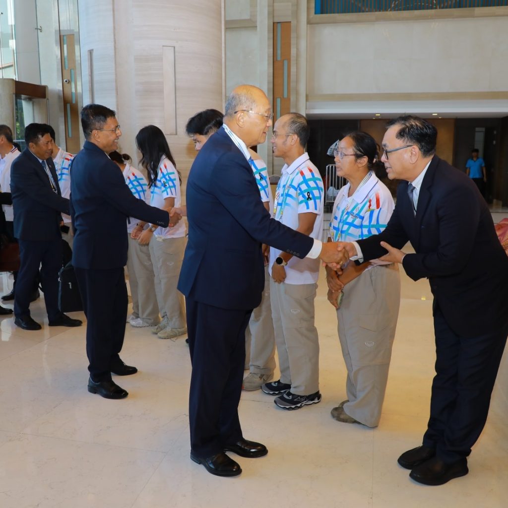 (၃၃)ကြိမ်မြောက် အရှေ့တောင်အာရှအားကစားပြိုင်ပွဲသို့ ဝင်ရောက်ယှဉ်ပြိုင်ရန်အတွက် မြန်မာနိုင်ငံအိုလံပစ်ကော်မတီ ဥက္ကဋ္ဌ၊ အားကစားနှင့်လူငယ်ရေးရာဝန်ကြီးဌာနနှင့် ဟိုတယ်နှင့် ခရီးသွားလာရေးဝန်ကြီးဌာန ပြည်ထောင်စုဝန်ကြီး Jeng Phang နော်တောင်သည် ပြန်ကြားရေးဝန်ကြီးဌာန ဒုတိယဝန်ကြီး ဦးရဲတင့်၊ ရန်ကုန်တိုင်းဒေသကြီး အစိုးရအဖွဲ့ လူမှုရေးရာဝန်ကြီး ဦးဌေးအောင် အပါအဝင် မြန်မာအားကစားအဖွဲ့မှ အားကစားသမားများနှင့်အတူ ယနေ့မွန်းလွဲပိုင်းတွင် မြန်မာ့လေကြောင်းလိုင်း(MAI)ဖြင့် ထိုင်းနိုင်ငံ ဗန်ကောက်မြို့သို့ ရောက်ရှိလာရာ ထိုင်းနိုင်ငံဆိုင်ရာ မြန်မာသံအမတ်ကြီး ဦးဇော်ဇော်စိုး၊ မြန်မာအားကစားအဖွဲ့ခေါင်းဆောင်၊ အားကစားနှင့်ကာယပညာ ဦးစီးဌာန ညွှန်ကြားရေးမှူးချုပ် ဦးဉာဏ်ဇော်ဦးနှင့် (၃၃)ကြိမ်မြောက် အရှေ့တောင်အာရှအားကစား ပြိုင်ပွဲကျင်းပရေးမှ တာဝန်ရှိသူများက သွားရောက်ကြိုဆိုခဲ့သည်။
