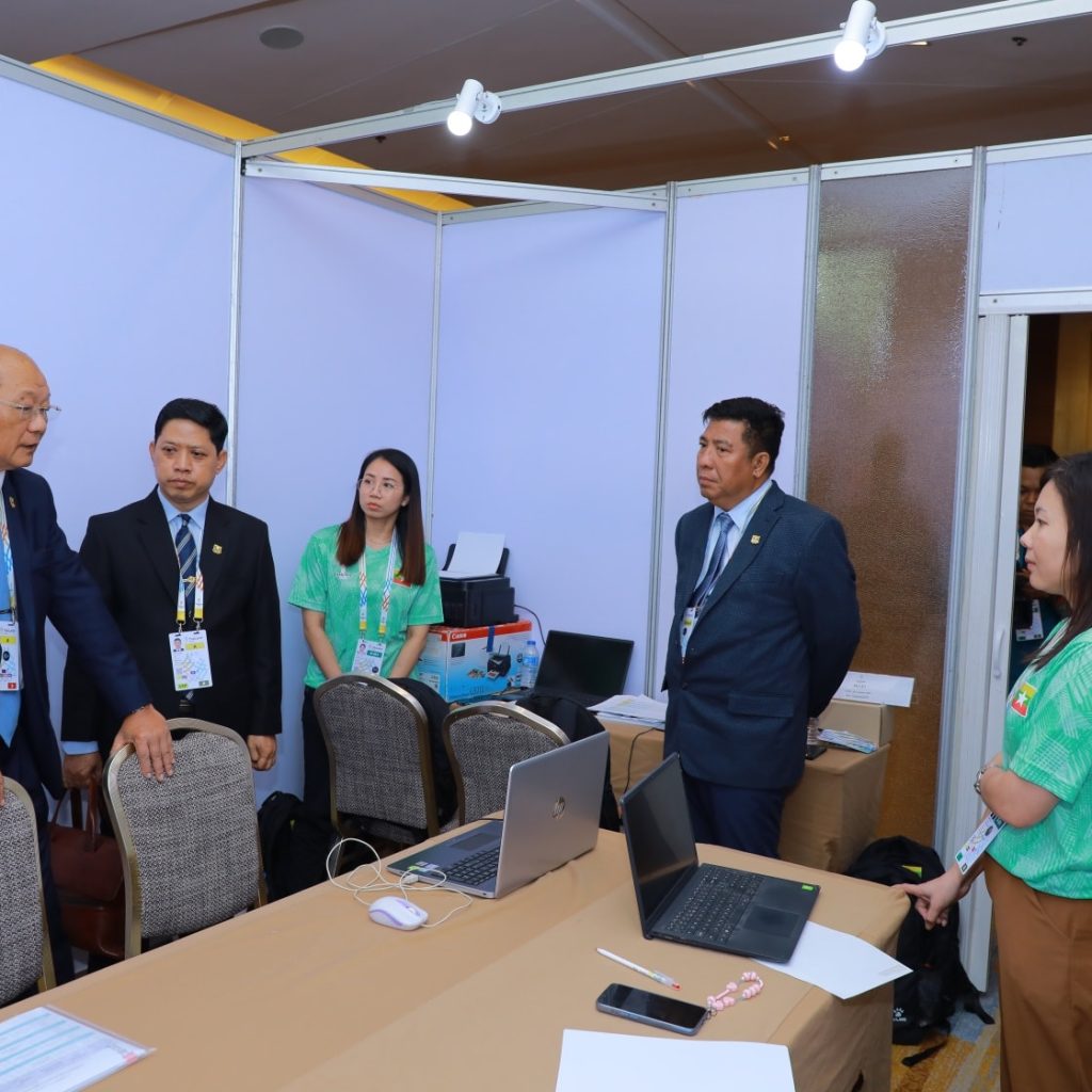 ဆက်လက်ပြီး ပြည်ထောင်စုဝန်ကြီးသည် GRAND FOUR WINGS HOTEL မြန်မာအားကစားအဖွဲ့မှ ရုံးခန်းဖွင့်လှစ်၍ အောင်နိုင်ရေးအတွက် ရုံးလုပ်ငန်းဆိုင်ရာကိစ္စရပ်များ ဆောင်ရွက်မည့် ရုံးခန်းနေရာ ပြင်ဆင်ထားရှိမှုများနှင့် ပင်မကွပ်ကဲအုပ်ချုပ်မှုအဖွဲ့များ၏ ရုံးလုပ်ငန်းဆောင်ရွက်နေမှုများကို လိုက်လံကြည့်ရှုစစ်ဆေးခဲ့ပြီးနောက် (၃၃)ကြိမ်မြောက် အရှေ့တောင်အာရှ အားကစားပြိုင်ပွဲတွင် မြန်မာအားကစားအဖွဲ့ အောင်မြင်မှုရရှိပြီး နိုင်ငံဂုဏ်ဆောင်နိုင်အောင် ကိုယ်စွမ်းဉာဏ်စွမ်းရှိသမျှ ဝိုင်းဝန်းပူးပေါင်း၍ ကြိုးစားဆောင်ရွက်ပေးသွားကြရန် တိုက်တွန်းမှာကြားခဲ့ကြောင်းသိရသည်။