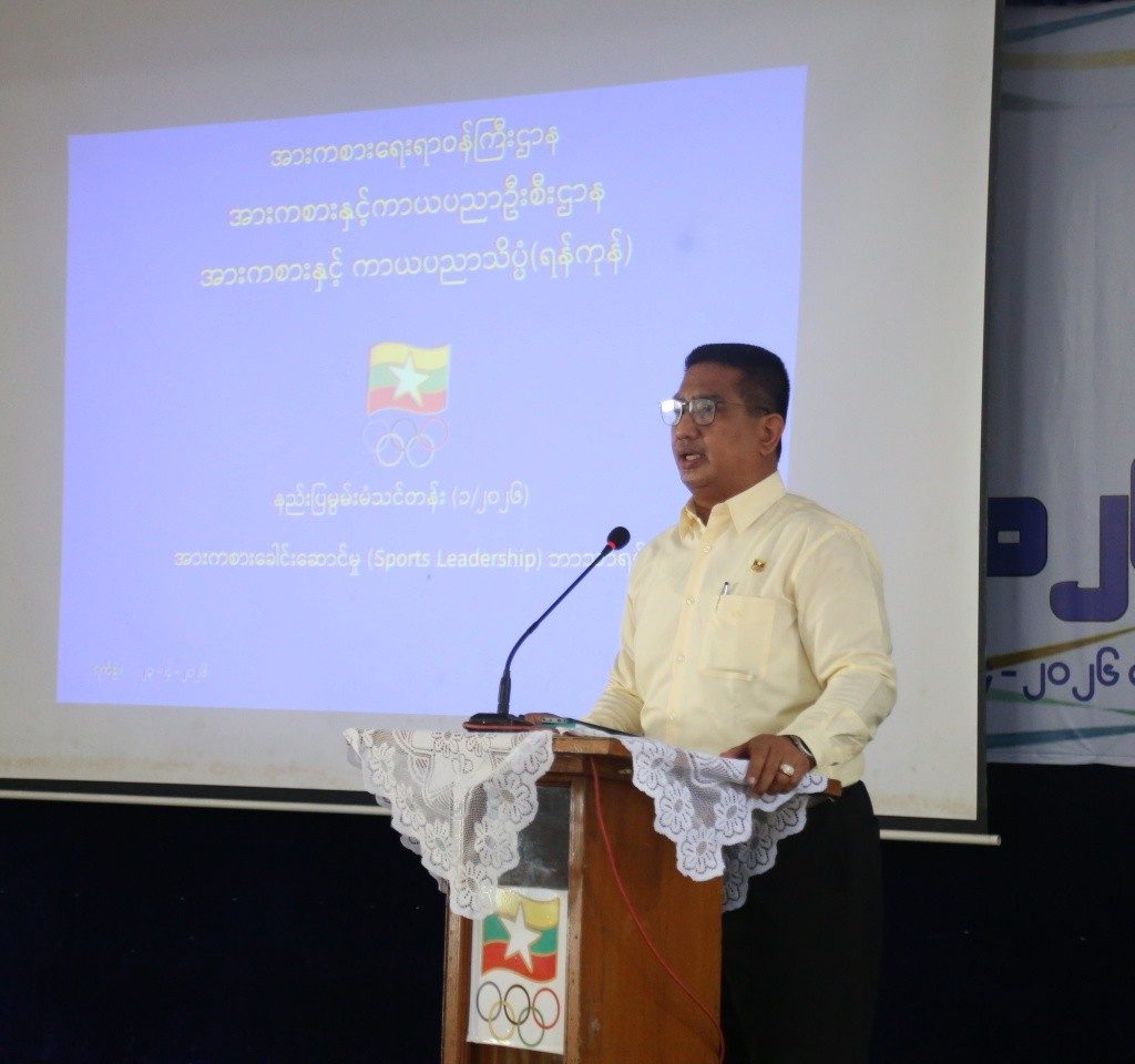 ဦးစွာ အားကစား နှင့်ကာယပညာဦးစီးဌာန ဒုတိယညွှန်ကြားရေးမှူးချုပ် ဦးကျော်ဦး က အဖွင့်အမှာစကားပြောကြားရာတွင် ယခုဖွင့်လှစ်သည့်နည်းပြသင်တန်း(၁/၂၀၂၆)ကို ရည်ရွယ်ချက် (၃)ရပ်ဖြင့် ဖွင့်လှစ်ရခြင်းဖြစ်ကြောင်း၊ အားကစားနှင့် ကာယပညာသိပ္ပံကျောင်းများ၏ ဦးတည်ချက်များကို အကောင်အထည်ဖော်ဆောင်ရွက်ရာတွင် အထောက်အကူဖြစ်စေရန် ၊အားကစားနည်းအလိုက် ခေတ်နဲ့အညီ ပြောင်းလဲနေသည့်နည်းစနစ်များ၊ နည်းဥပဒေသများကို သိရှိနိုင်စေရန်၊ အရည်အချင်း ပြည့်ဝသည့်နည်းပြများပေါ်ထွက်လာစေရန်၊ အားကစားသမားများကို နည်းစနစ်ပိုင်းဆိုင်ရာနှင့် စိတ်ဓာတ်ပိုင်းဆိုင်ရာတွေမှာ နည်းစနစ်တကျ သင်ကြားနိုင်စေရန်၊ အားကစားလေ့ကျင့်ရေးနှင့် ယှဉ်ပြိုင်မှုတိုင်းတွင် အားကစားသိပ္ပံကဏ္ဍကို မျက်ခြေ မပြတ်စေဘဲ စဉ်ဆက်မပြတ်လေ့လာနိုင်စေရန်ရည်ရွယ်ပြီးဖွင့်လှစ်ရခြင်းဖြစ်ကြောင်း၊ အားကစားဟာလူတစ်ယောက်ရဲ့ ကျန်းမာရေး၊ စိတ်ဓာတ်ပိုင်းဆိုင်ရာနှင့် လူမှုဆက်ဆံရေးဖွံ့ဖြိုးတိုးတက်ရေးတို့မှာ အရေးပါသောအခန်းကဏ္ဍတစ်ခုအနေဖြင့် ပါဝင်နေပါကြောင်း၊ အားကစားကဏ္ဍဖွံ့ဖြိုး တိုးတက်စေရန်အတွက် အားကစားသမားတွေသာမက အရည်အချင်း ပြည့်ဝသော နည်းပြများရှိရန်လည်း အလွန်အရေးကြီးပါကြောင်း၊ နည်းပြတစ်ဦးသည် အားကစားသမားများကို နည်းစနစ် သင်ကြားပေးနိုင်ရုံသာမက လမ်းညွှန်မှုပေးနိုင်သူ၊ စိတ်ဓာတ်တက်ကြွစေရန်အတွက် လှုံ့ဆော်မှုပေးနိုင်သည့် ခေါင်းဆောင် တစ်ဦးဖြစ်ရန်လည်းလိုအပ်ပါကြောင်း၊ နည်းပြများရဲ့ အရည်အချင်းပြည့်ဝမှု ၊ အရည်အသွေးမြင့်မားမှုဟာ အားကစား လောကအောင်မြင်မှုရဲ့ အခြေခံအုတ်မြစ်တစ်ခုဖြစ်ပါကြောင်း၊ ဒီသင်တန်းကတစ်ဆင့် သင်တန်းသား/သင်တန်းသူများ အသိပညာ၊ အတတ်ပညာအသစ်များရရှိပြီး နည်းပြများအချင်းချင်း အားကစားနည်းပညာ Network ချိတ်ဆက်မှုများ တိုးချဲ့နိုင်သည့်အခွင့်အလမ်းကောင်းများရရှိပြီး အချိန်ကိုတန်ဖိုးထားကာသင်တန်းမှပို့ချသည့် သင်တန်းနည်းပြ ဆရာ/ ဆရာမများ၏ ဟောပြောပို့ချသည့် သင်ခန်းစာများကို တက်တက်ကြွကြွ လေ့လာမှတ်သားကြစေလိုကြောင်း၊ သင်တန်းက ရရှိလာသည့် အတွေ့အကြုံကောင်းများကို မိမိတို့ရဲ့ လုပ်ငန်းခွင်များမှာ ပြန်လည်အသုံးချပြီး အားကစားကဏ္ဍဖွံ့ဖြိုး တိုးတက်စေရေးအတွက် ဆက်လက်ကြိုးပမ်းသွားကြရန် တိုက်တွန်းမှာကြားခဲ့သည်။