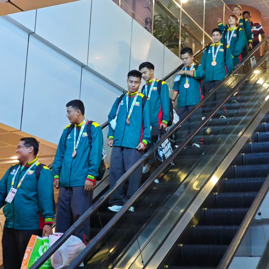 ၂၀၂၅ ခုနှစ် ဒီဇင်ဘာလ ၉ ရက်နေ့မှ ၂၀ ရက်နေ့အထိ ထိုင်းနိုင်ငံ ၊ ဘန်ကောက်မြို့၌ ကျင်းပသည့် (၃၃)ကြိမ်မြောက် အရှေ့တောင်အာရှအားကစားပြိုင်ပွဲသို့ ဝင်ရောက်ယှဉ်ပြိုင်ခဲ့သည့် ပြေးခုန်ပစ် အားကစားနည်းမှ အမျိုးသား(၂၀)ကီလိုမီတာလမ်းလျှောက်ပြိုင်ပွဲတွင်ဒုတိယငွေတံဆိပ်ဆုရ နိုင်လင်းထွန်း၊ အမျိုးသမီး(၂၀)ကီလိုမီတာလမ်းလျှောက်ပြိုင်ပွဲတွင် ဒုတိယငွေတံဆိပ်ဆုရ ဇင်မေထက် ၊ ကရာတေး အားကစားနည်းမှ အမျိုးသမီး(-50Kg) Kumite ပြိုင်ပွဲတွင် ဒုတိယငွေတံဆိပ်ဆုရ ဖလောရင့်နေခြည်ထွန်း၊ အမျိုးသမီး(-61Kg) Kumite ပြိုင်ပွဲတွင် တတိယကြေးတံဆိပ်ဆုရ သင်ဇာယွန်း၊ ဂျူဒိုအားကစားနည်းမှ အမျိုးသမီး(-78Kg) ပြိုင်ပွဲတွင် ဒုတိယငွေတံဆိပ်ဆုရ အေးအေးအောင် ၊ အမျိုးသား/ အမျိုးသမီး (Mix Team) အသင်းလိုက်ပြိုင်ပွဲတွင် တတိယကြေးတံဆိပ်ဆု၊ ပိုက်ကျော်ခြင်းအားကစားနည်းမှ အမျိုးသား အသင်းလိုက်ပြိုင်ပွဲတွင် တတိယ ကြေးတံဆိပ်ဆုရ ထူးအောင်ကျော်၊ အောင်အောင်၊ ကျော်မင်းသူ၊ မင်းသန့်သူ တို့အတွဲ ၊ အမျိုးသမီးအသင်းလိုက်ပြိုင်ပွဲတွင် တတိယ ကြေးတံဆိပ်ဆုရ နမ့်မေသူထွေး၊ လိုင်ရိုအင်း၊ သီရိအောင်၊ ကြူကြူသင်းတို့အတွဲ ၊ ဘိလိယက်အားကစားနည်းမှ အမျိုးသား Snooker 6-Red Team ပြိုင်ပွဲတွင် တတိယ ကြေးတံဆိပ်ဆုရ ဝင်းကိုကို နှင့် အားကစားအဖွဲ့ဝင်များ၊ အုပ်ချုပ်မှုအဖွဲ့ဝင်များသည် ယနေ့ညနေပိုင်းတွင် အပြည်ပြည်ဆိုင်ရာ မြန်မာ့လေကြောင်းလိုင်း (MAI) ဖြင့် ရန်ကုန် အပြည်ပြည်ဆိုင်ရာလေဆိပ်သို့ ပြန်လည်ရောက်ရှိလာရာ အားကစားနှင့်ကာယပညာဦးစီးဌာနမှ တာဝန်ရှိ ပုဂ္ဂိုလ်များ ၊ ပြိုင်ပွဲဝင် အားကစားသမားများ၏ မိဘဆွေမျိုးများက ဂုဏ်ပြုကြိုဆိုကြကြောင်းသိရသည်။