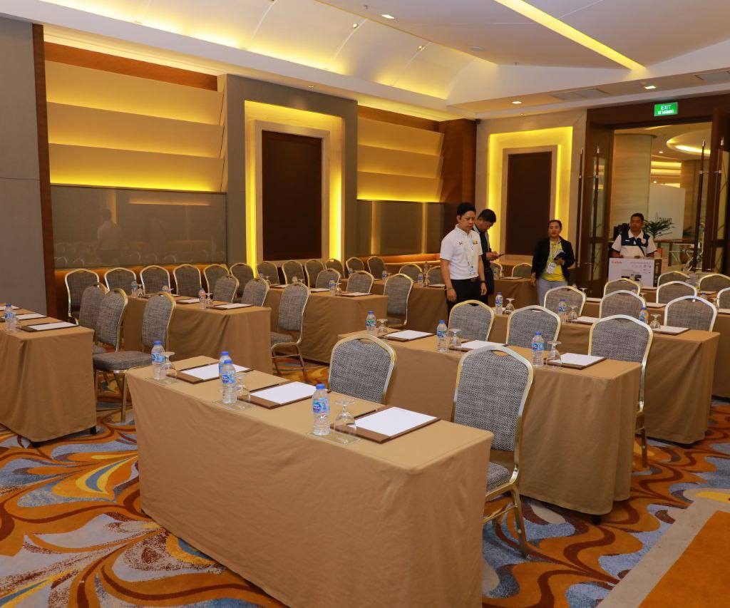 ဆက်လက်ပြီး မြန်မာအားကစားအဖွဲ့ခေါင်းဆောင်သည် မြန်မာအားကစားအဖွဲ့မှ အုပ်ချုပ်မှုအဖွဲ့ များနှင့် အားကစားသမားများ တည်းခိုနေထိုင်မည့် MADISON HOTEL နှင့် GRAND FOUR WINGS HOTEL တို့အားလည်းကောင်း၊ မြန်မာအားကစားအဖွဲ့မှ အုပ်ချုပ်မှုအဖွဲ့များ ရုံးခန်းဖွင့်လှစ်၍ မြန်မာ အားကစားအောင်နိုင်ရေးအတွက် ရုံးလုပ်ငန်းဆိုင်ရာကိစ္စရပ်များဆောင်ရွက်မည့် ရုံးခန်းနေရာ ပြင်ဆင်ထားရှိမှုများနှင့် Chef de Mission (CDM)အစည်းအဝေးကျင်းပမည့် ခန်းမတို့အား လိုက်လံကြည့်ရှုခဲ့ကြောင်း သိရသည်။