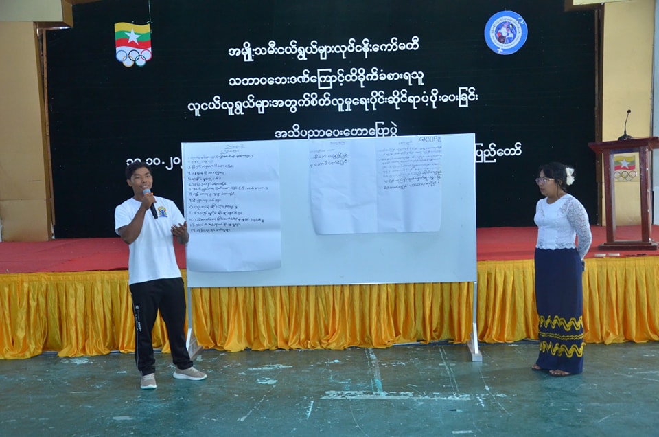 သဘာဝဘေးဒဏ်ကြောင့် ထိခိုက်ခံစားရသူ လူငယ်လူရွယ်များအတွက် စိတ်လူမှုရေးပိုင်းဆိုင်ရာ ပံ့ပိုးပေးခြင်း အသိပညာပေးဟောပြောပွဲအခမ်းအနားကို ယနေ့မွန်းလွဲပိုင်းတွင် နေပြည်တော်၊ အားကစားလေ့ကျင့်ရေးစခန်း (Gold Camp) ရှိ Gold Medal Hall ၌ ကျင်းပခဲ့သည်။
