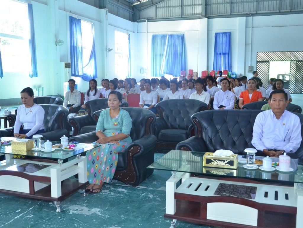 ဆက်လက်ပြီး အသိပညာပေးဟောပြောမည့် လူမှုဝန်ထမ်းကယ်ဆယ်ရေးနှင့် ပြန်လည်နေရာ ချထားရေးဝန်ကြီးဌာန၊ လူမှုဝန်ထမ်းဦးစီးဌာနမှ ညွှန်ကြားရေးမှူးနှင့်တာဝန်ရှိသူတို့ကို အမျိုးသမီးငယ်ရွယ် လုပ်ငန်းကော်မတီ ဥက္ကဋ္ဌ၊ အားကစားနှင့်လူငယ်ရေးရာဝန်ကြီးဌာန၊ လူငယ်ရေးရာဦးစီးဌာန ညွှန်ကြားရေးမှူးချုပ် ဦးကျော်စိုးမိုးက အမှတ်တရလက်ဆောင်ပစ္စည်းများ ပေးအပ်ခဲ့ပြီးနောက် လူမှုဝန်ထမ်းဦးစီးဌာနမှ ညွှန်ကြားရေးမှူး ဒေါ်မြသီတာ၊ ဦးစီးအရာရှိများဖြစ်ကြသည့် ဒေါ်ခင်နှင်းထက်နှင့် ဒေါ်တင်နီလာဝင်းတို့က သဘာဝဘေးဒဏ်ကြောင့် ထိခိုက်ခံစားရသူ လူငယ်လူရွယ်များအတွက် စိတ်လူမှုရေးပိုင်းဆိုင်ရာ ပံ့ပိုးပေးခြင်းခေါင်းစဉ်ဖြင့် ဆွေးနွေးဟောပြောခြင်း၊ အုပ်စုဖွဲ့ဆွေးနွေးခြင်းများ၊ မေးခွန်းမေးမြန်းခြင်းများ ကိုပြုလုပ်ခဲ့ပြီး အခမ်းအနားအား ရုပ်သိမ်းခဲ့ကြောင်းသိရသည်။