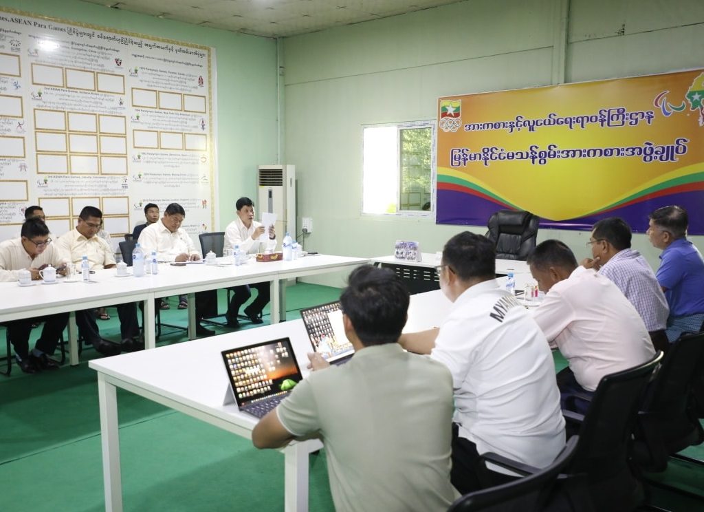 ဆက်လက်ပြီး ညွှန်ကြားရေးမှူးချုပ်နှင့်အဖွဲ့သည် ဒဂုံမြို့သစ်မြောက်ပိုင်းရှိ မြန်မာနိုင်ငံ မသန်စွမ်း အားကစားအဖွဲ့ချုပ်သို့ သွားရောက်၍ တာဝန်ရှိသူများနှင့်တွေ့ဆုံ၍ (၁၃)ကြိမ်မြောက် အာဆီယံ မသန်စွမ်းအားကစားပြိုင်ပွဲသို့ ဝင်ရောက်ယှဉ်ပြိုင်ခြင်းနှင့်ပတ်သက်သည့် ထောက်ပံ့ကြေး ကိစ္စ၊ ခြေတုကိစ္စ၊ စားစရိတ်ကိစ္စ၊ ပြိုင်ပွဲဝင်ရောက်ယှဉ်ပြိုင်မှုများ၊ တည်းခိုနေထိုင်ရေးနှင့် သယ်ယူ ပို့ဆောင်ရေးကိစ္စရပ်များနှင့်ပတ်သက်ပြီး ဆွေးနွေးညှိနှိုင်းခဲ့သည်။