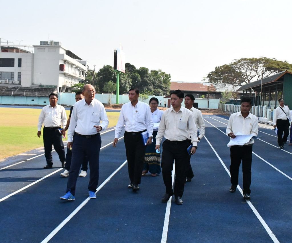 အားကစားနှင့်လူငယ်ရေးရာဝန်ကြီးဌာန ဒုတိယဝန်ကြီးဦးထိန်လင်း ရန်ကုန်မြို့ရှိ အောင်ဆန်းအားကစားပြိုင်ဝင်းအား သွားရောက်ကြည့်ရှုစစ်ဆေး